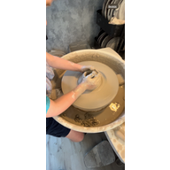 I min atelje finns 3 drejskivor. Är man fler än tre personer så får man turas om på drejskivorna. Det finns även ett stort arbetsbord där man kan skapa för hand genom andra härliga tekniker. Jag startar med att berätta om leran som används samt visar tekniker och efter det så finns jag på plats för att guide er igenom resan från en klump lera, till något som du själv skapat.